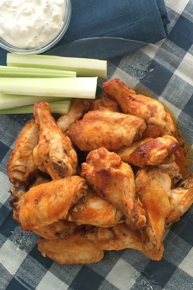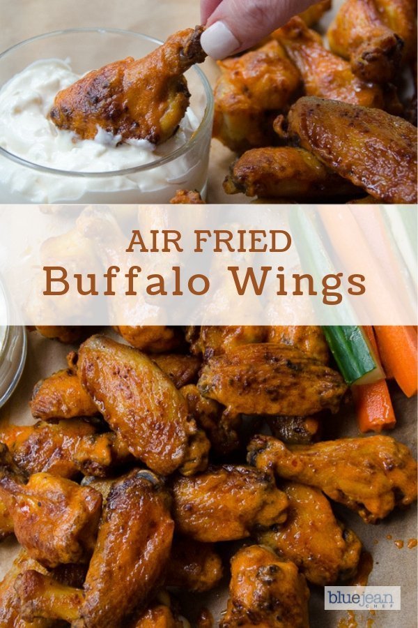 Most Buffalo wings that you’d get out at a restaurant are simply deep-fried and then tossed with butter and hot sauce. The flavor is all in the sauce, which is on the outside of the wings. The secret to getting even more of that Buffalo sauce flavor on your wing is to marinate the wings in the sauce first, THEN air-fry them and then toss again at the end. That initial marinating time makes all the difference, getting the flavor inside the wing as well as on the outside. They are still messy and finger-licking good, but even more so!