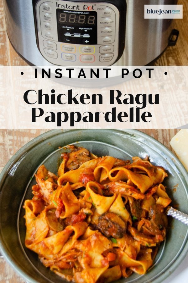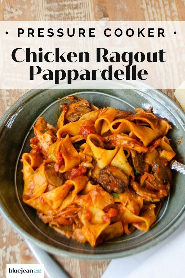 One of the best features of quick and easy pressure cooker recipes like this chicken ragoût pappardelle is that you use all your own whole ingredients, rather than quick short cuts. None of the ingredients in this recipe are hard to come by – you probably have everything already in your kitchen right now, except perhaps the pappardelle, but you can substitute other dried pasta for that if you like (just cook the pasta for half the time on the box instructions).