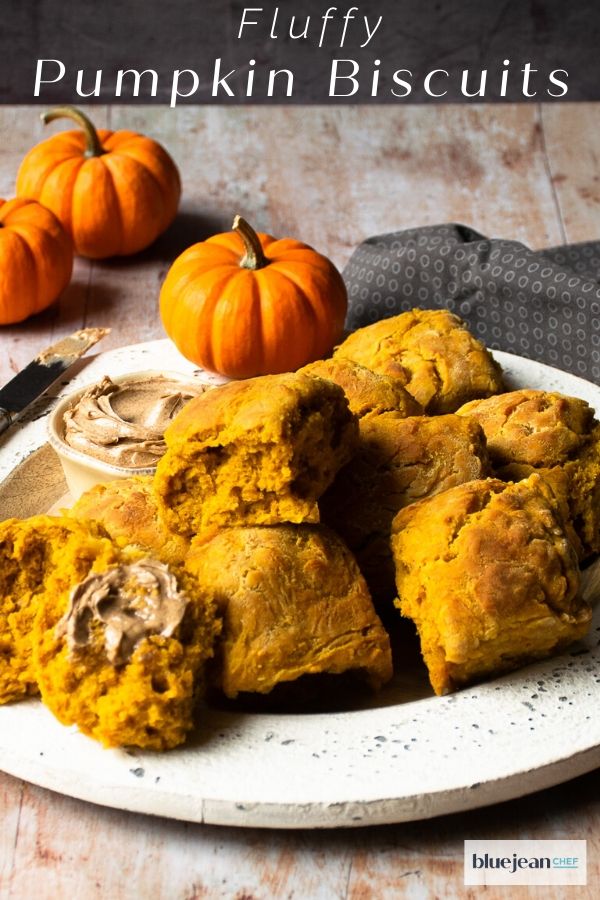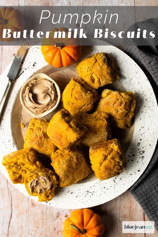 Making the perfect buttermilk biscuit is not hard and it’s so rewarding – especially when you are spreading a little butter on a warm biscuit and popping it into your mouth. These pumpkin buttermilk biscuits use the same technique as my regular buttermilk biscuits and you can read and watch all about them here. (Hint: grating frozen butter into the flour so that you don’t over-mix the ingredients is key.)