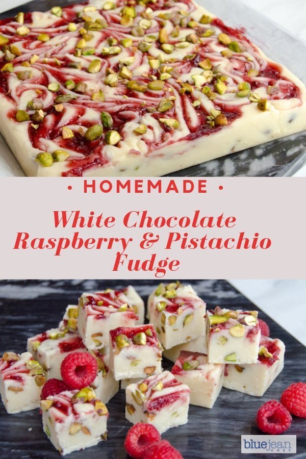 Creamy fudge, tart raspberry and salty crunch pistachios are a trifecta. We got rave reviews over this easy to make fudge. The white chocolate fudge is so decadent and could be a great base for any number of flavor profiles but I don’t think I will mess with perfection.
